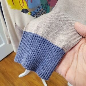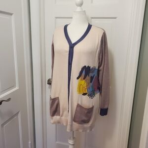 LOGO by Lori Goldstein Color Block W/Graphic Print Knit Cardigan Size Large, Soft & Comfy