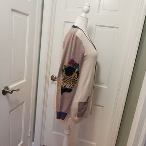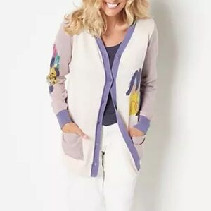 LOGO by Lori Goldstein Color Block W/Graphic Print Knit Cardigan Large, Soft