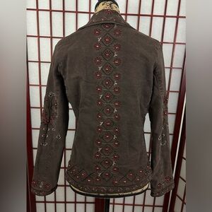 Vintage Brown Grunge Embroidered Unique Funky Embellishmed Button Denim Jacket