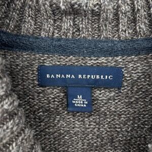 Banana Republic Elevated Shawl mens sweater in brown. Made of Lambs Wool blend. Shawl neck with accent button. Long sleeve. Size medium. Excellent used condition. No flaws detected. See measurements for proper fit.