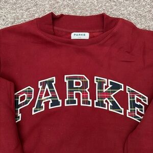 Bold Parker logo on a rich burgundy crewneck. Ideal for casual wear. large size