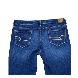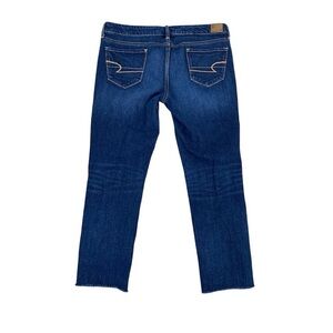 BRAND: American Eagle Outfitters SIZE: 14 Long MATERIAL: 98% Cotton 2 % Spandex DESCRIPTION: Medium wash denim with a bit of stretch. Classic 5 pockets. Raw hem. APPROXIMATE MEASUREMENTS LAID FLAT: Inseam: 27 inches Rise: 9 inches Across the waist: 18.5 inches CONDITION: Good used condition Smoke free home. Professional seller with 2 years experience and great reviews. * Shades of color vary according to light and monitor settings. Shade cannot be guaranteed