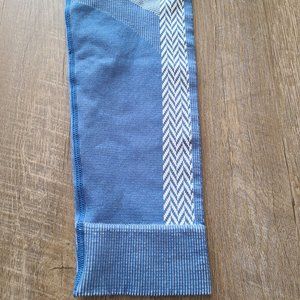 Excellent used condition Fabletics seamless high-waisted check leggings in atlantic blue/white colorway. Ribbed waistband, moisture wicking fabric. 65% nylon, 27% polyester, 8% elastane, although tags have been removed. Size small based on measurements and size chart has been attached.