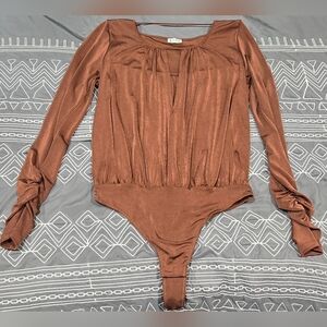 Good condition. Size 5 which is a medium. Coral like color on top with white on bottom. Logo on front of shirt. Logo tag on bottom left hem. Small whole under one armpit, can be sewn. Measurements and fabric content listed above in pictures.