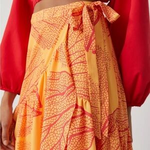 ANTHROPOLOGIE Hutch Leaf Printed Ruffle High Low Wrap Maxi Skirt Orange S NWT