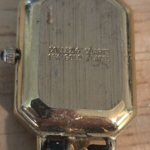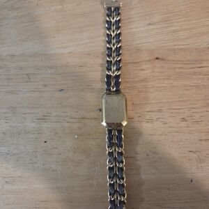 Elegant watch with a gold and black chain link design. Features a rectangular face. new battery inside