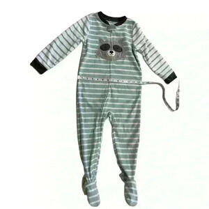 New Carter's Raccoon Fleece Pajama PJs 1 pc Boy Sleeper Footless Size 3T Green