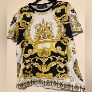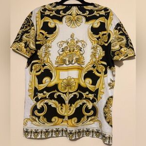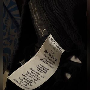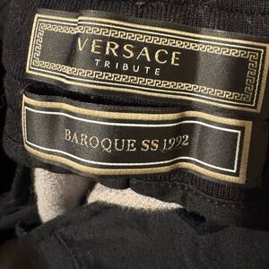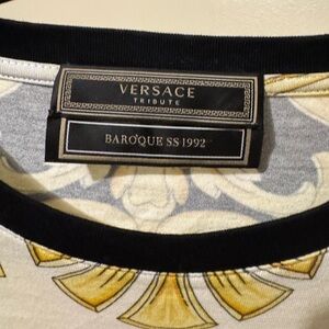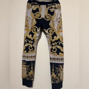 Stunning Versace set including one Versace Baroqur Tshirt size M and the matching jogger pants in size L with elastic band and drawstrings! This set was almost $2000 new so you’re getting a large discount! This set features a sophisticated Baroque print from the SS92 collection the pants have Versace Engraved Drawstring tips and both have the CLG to make them easily authenticated! Check my account for tons more Versace and other designer goods!!