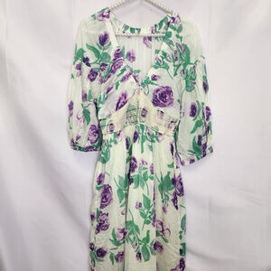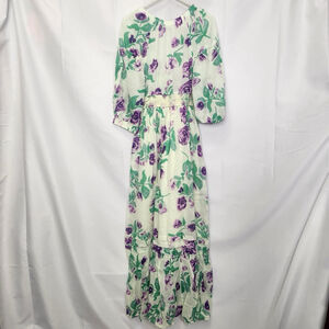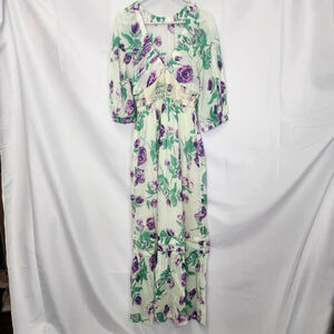 Free People Maxi Dress Golden Hour V-Neck Floral Multicolor 3/4 Sleeves XS Boho