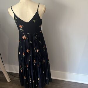 Elegant wrap dress with floral accents. Perfect for evening wear. Worn by Emma Roberts. Pleated. Adjustable straps.