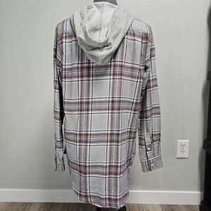 Pacsun Hooded Grey Plaid Button Up Oversize Flannel Shacket Jacket Womens Small