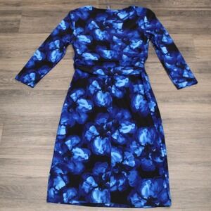 Chaps Floral Print Wrap Dress Blue Black Midi Length 3/4 Sleeve Small