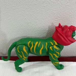 Battle Cat He-Man Masters of the Universe vintage action figure is a collectible item from the 1980s, featuring the iconic character He-Man and his fierce battle companion, Battle Cat. Made of plastic and multicolored, this 1:12 scale figure is a part of the original Masters of the Universe franchise by Mattel. With its vintage appeal and first edition status, this action figure is a must-have for fans of the TV show and movie, capturing the essence of the series in a nostalgic and sought-after piece. Good condition
