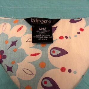 LA LINGERIE Tunic Nightgown 3/4 Sleeve 100% Cotton Mandala Pattern Embroidery