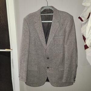 42 LONG VINTAGE FARAH 100% WOOL two BUTTON TWEED Gray SPORT COAT