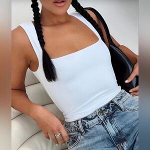 Elevate your style with this chic white sleeveless top. Featuring a modern square neck design, it's perfect for any occasion
