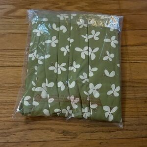 Adorable olive green dress with cream floral design. Long sleeves and playful style.
