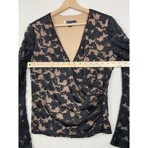 JS BOUTIQUE Lace Overlay Blouse M Sequins Faux-Wrap Mesh Top Evening Romantic