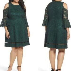 Eliza J Green Lace Cold Shoulder Dress 14w NEW