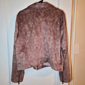 Anthroplogie Women's XL Lucy Pink Tie Dye Faux Suede Moto Motorcycle Jacket