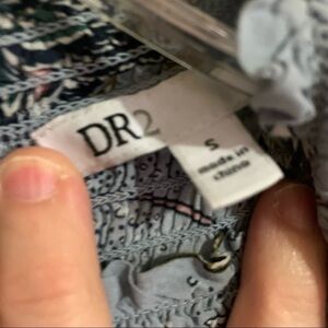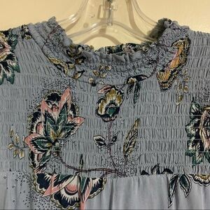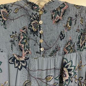 Dr2 Smocked Ruffled High Collar Button Back Blue Floral Maxi Dress. Size small