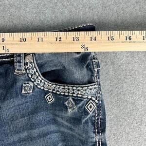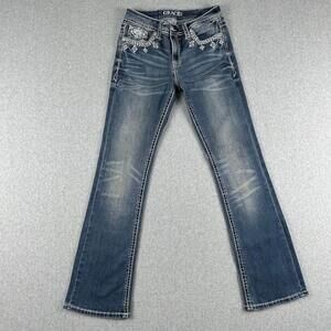Grace In LA Bootcut Jean Women 27x31 Blue Denim Rhines Embroid Aztec Whisk Jewel