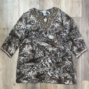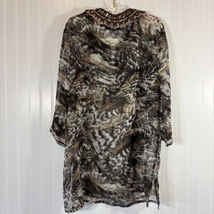 Chicos Womens Beaded Tunic Size 3 Sheer Maximalist Mob Wife Glam Boho Ethnic