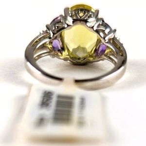 NEW Lemon Citrine, Amethyst & White Topaz Silver Ring Size 7