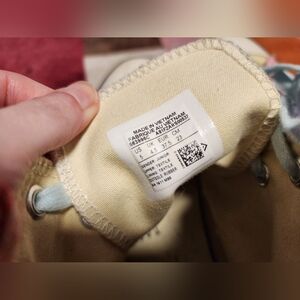 Converse All Stars multi tone pastel shoes. Pastel pink and lavender, baby blue laces, yellow/greenish tongue. US women's size 7. US junior girls size 5. Great shape, worn less than 10x, still have a lot of love left to give!
