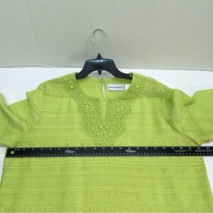 Alfred Dunner Size 14 Green Pullover Blouse 3/4 Sleeves Beads & Lace Mature Top