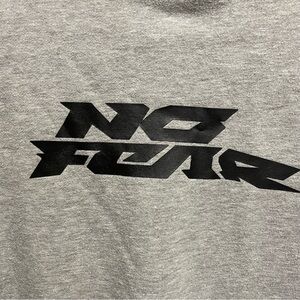 Vintage Y2K grey hooded sweatshirt by No Fear. Grey hoodie with No Fear branding on the chest and back. Youth 14 (also known as youth large) which fits like a men’s small. Some pilling as shown.