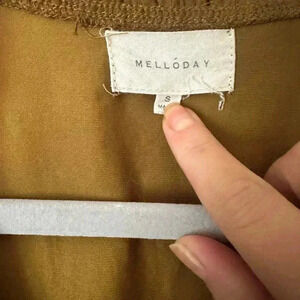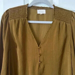 Bronze/brown blouse. Smocking on sleeves. Cute buttons on the front. V neck.
