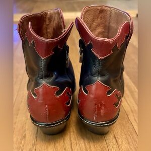 Vintage Donald J Pliner black and red leather western ankle boots Elegant ankle boots with striking red accents. Perfect for a bold fashion statement.