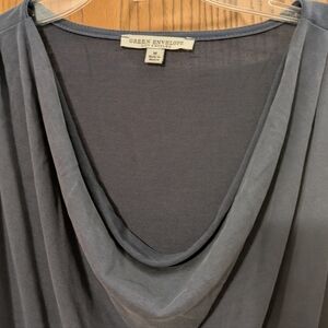 Elegant drape design. Soft fabric. Perfect for any occasion. In a grayish-blue shade. In excellent condition, only worn a handful of times.