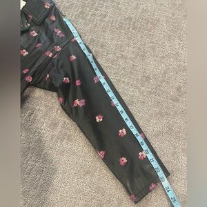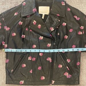 Rebecca Taylor Floriana Black Leather Jacket, Cropped, Pink Flower Print, Sz 2