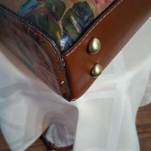 Beautiful cross body bag by Praticia Nash. In very good condition. One zipper pocket and two slip pockets inside. One zipper pocket in the back. Adjustable strap 45". L-10 H-6 W-3. Smoke and pet free home. Dust bag included.
