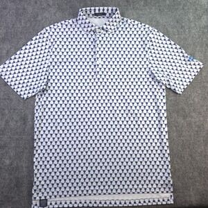 Turtleson Polo Medium White Blue Charcoal Grill Geometric Short Sleeve Golf