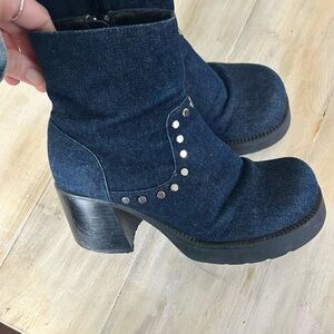 Vintage 90s Y2K chunky platform Bratz denim studded ankle boots size 6.5