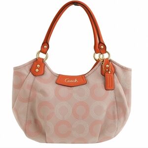 Coach Ashley Dotted Op Art Tote in Khaki With Salmon Interior (F23311)