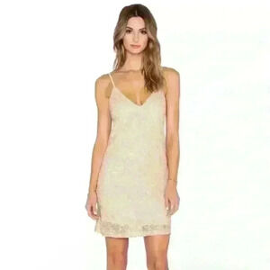 Alice + Olivia Kalia Beaded V-neck Beige Slip Dress Size Small