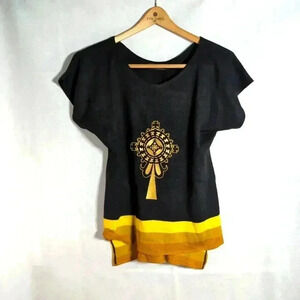 Black Eden Sweater Embroidered Gold Cross design sz M
