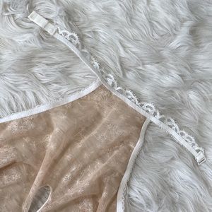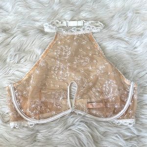 Super sexy! It’s a shame I never wore this. Adjustable lace neckline. Keyhole and bow details. Dainty embroidery. Underwire. High neck. Brand new without tags.