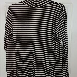 L.L. Bean Women's Gray and White Striped Cowl Neck Medium