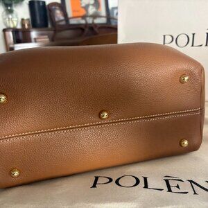 Elegant Polene shoulder bag. Features a stylish tan and brown design. Perfect for any occasion.