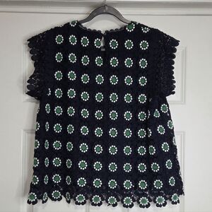 J. Crew Navy & Kelly Green Floral Crochet Top - Size M