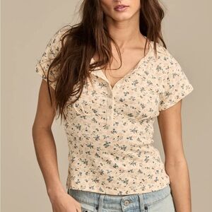 NWT - Lucky Brand Women's Light Blue Crochet Short Sleeve Babydoll tee