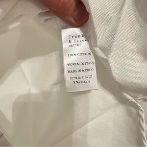 Go casual in this relaxed fitting button-up shirt constructed from breathable 100% cotton with a striped chest pocket and curved high-low hem. This is a super high quality brand. Retails new for $268. Brand new in package (F&E does not attach hang tags)