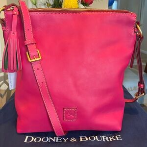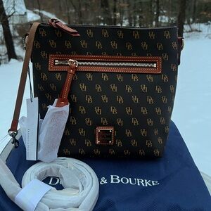 Adjustable strap with 21 1/2" drop for shoulder or crossbody wear, 16" (L) × 11" (H) × 3" (W)