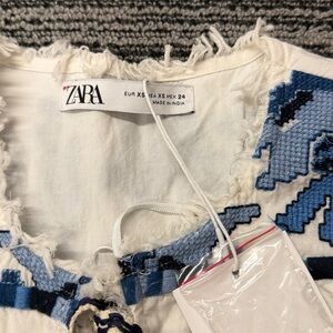 🔥🔥🔥NEW Zara White And Blue Embroidered Jacket Blouse