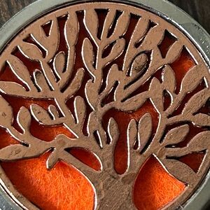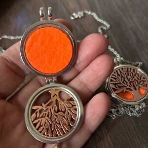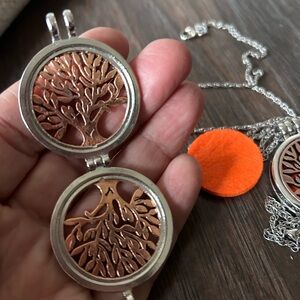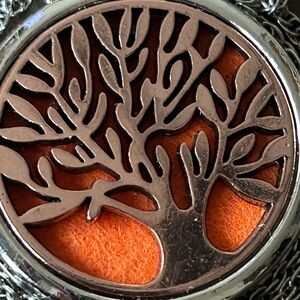 Cute “Tree of life” necklace locket’s with orange disc inside but you can make any color and customize it yourself 13 inches long with lobster clasp please refer to photos thank you! 💕
